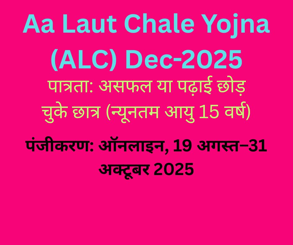 “Aa Laut Chale (ALC) Examination Yojna Dec-2025” शिक्षा से वंचित युवाओं के लिए नई उम्मीद की किरण है। अगर आपने किसी कारण पढ़ाई बीच में छोड़ दी थी, तो यह योजना आपके लिए एक नया आरंभ हो सकती है।